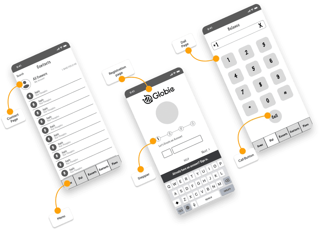 I also looked at competitors to see how other telephony apps handled these problems. What I found was that most focused on functionality but ignored personality. Globie had an opportunity to be both functional and fun.